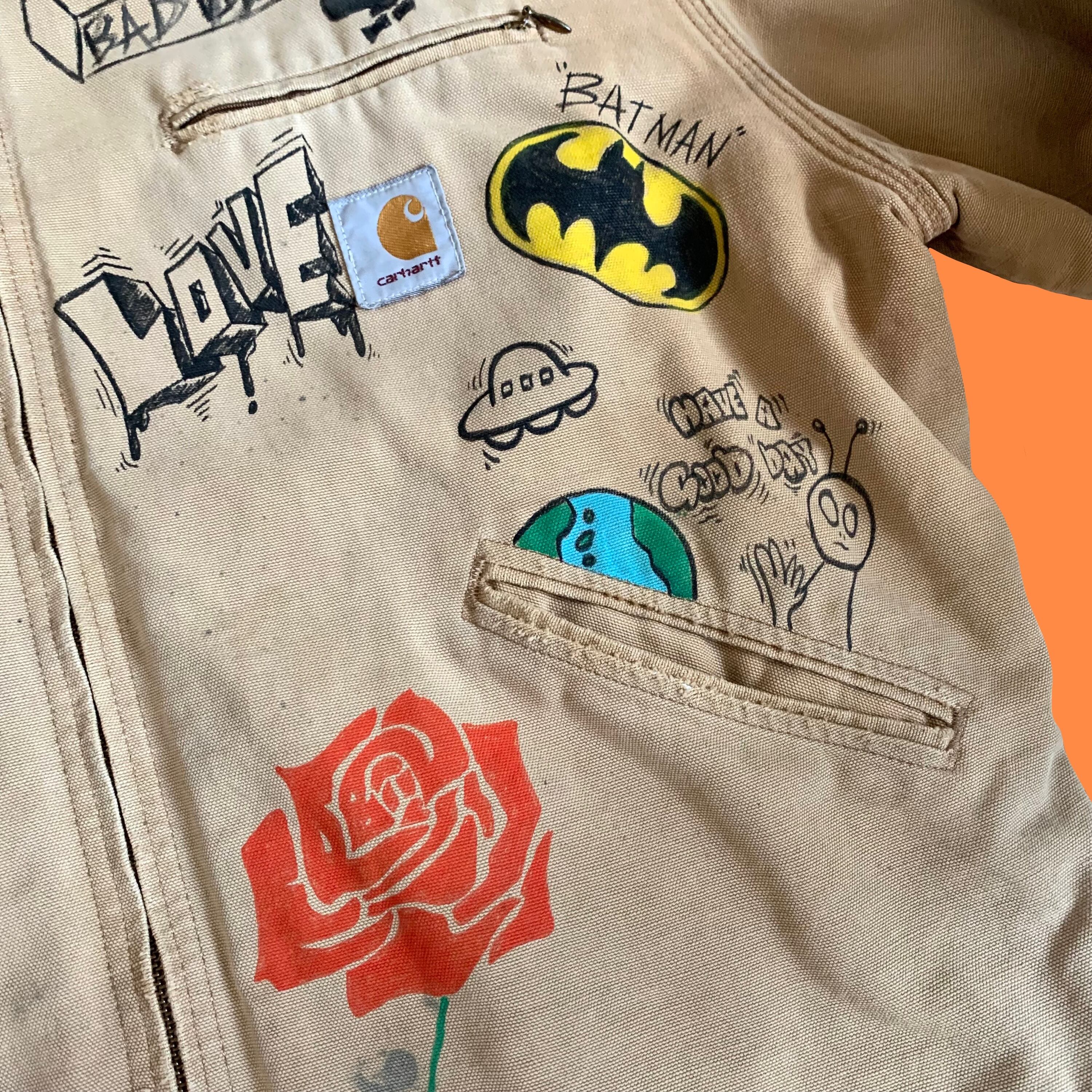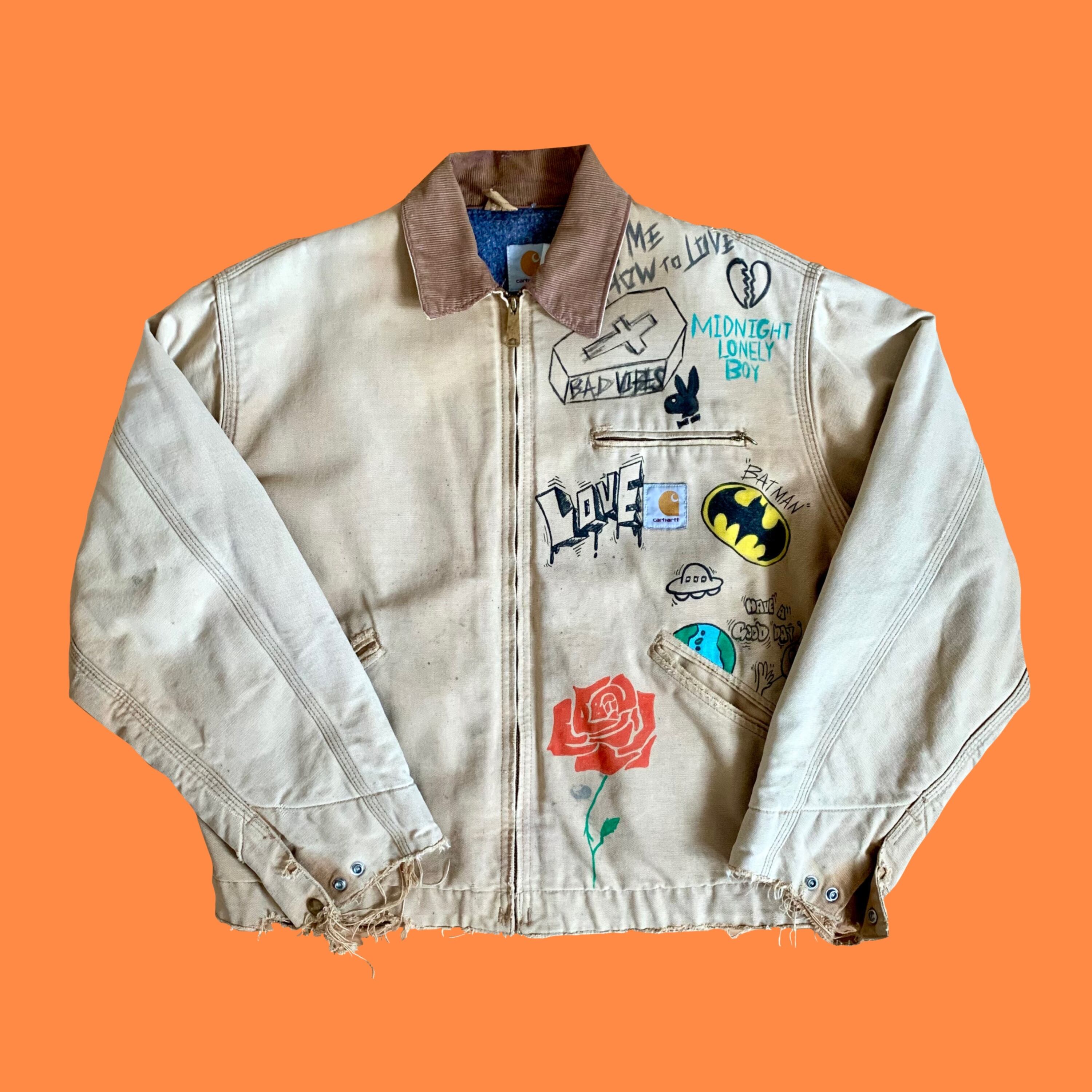 CUSTOM WORK JACKET 当ブランドのディレクターでありアーティストのMABUが自身の着用の為カスタムし制作した一着。 size(㎝) 身幅60㎝ 着丈60㎝ 袖丈58㎝